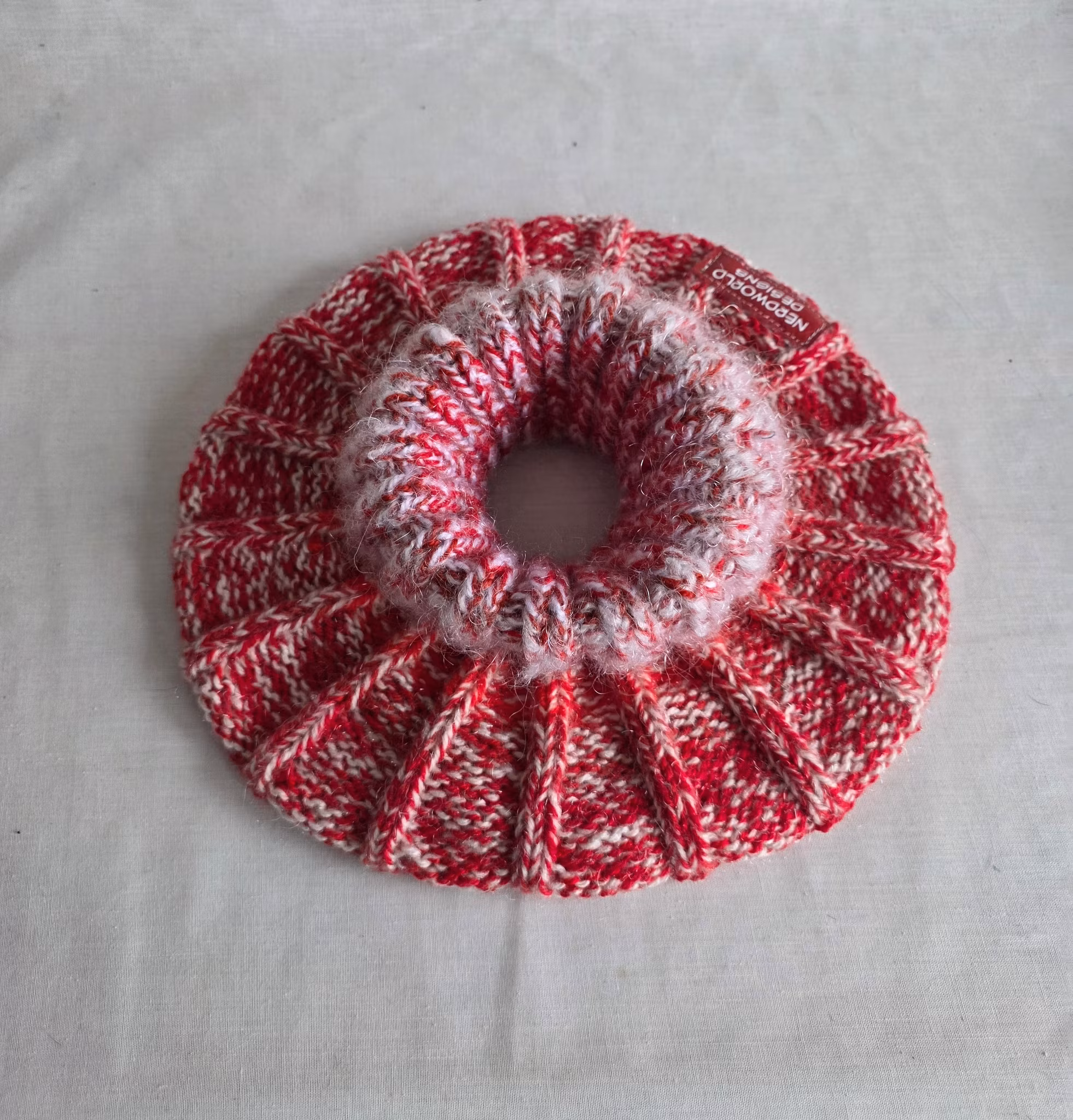Handstickad halsvärmare i akrylblandning.