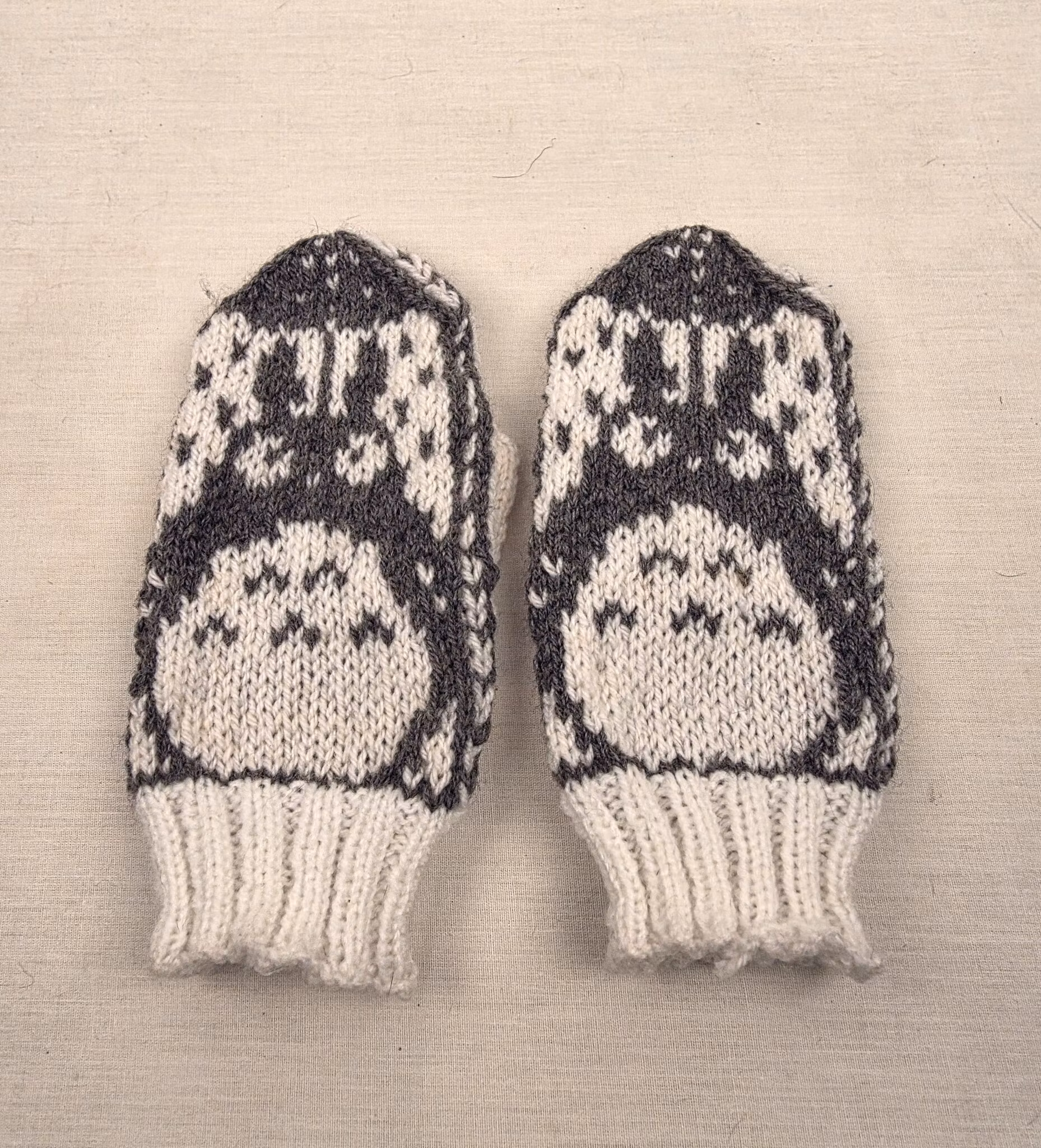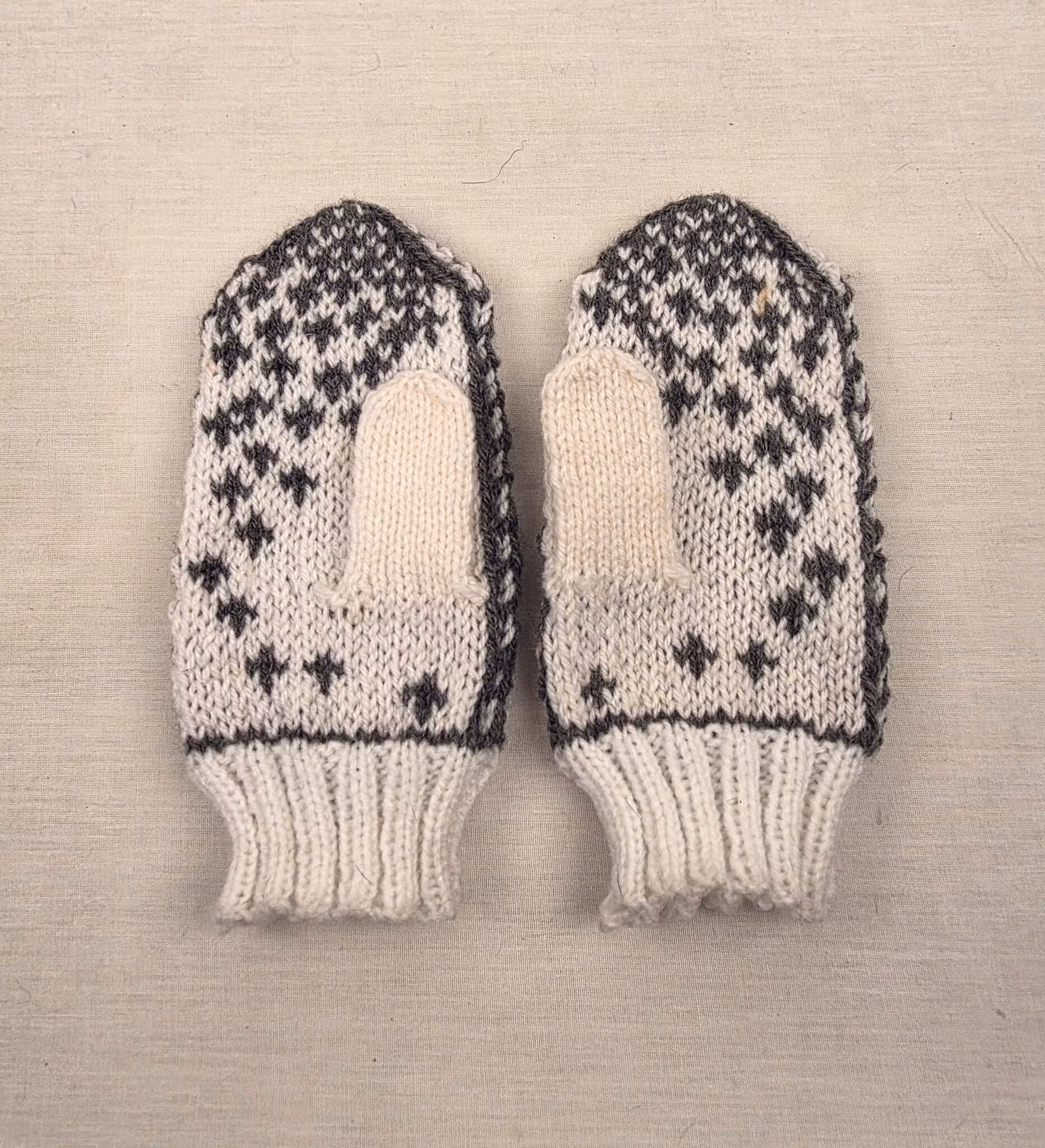 Stickade vantar med motiv i två färger.